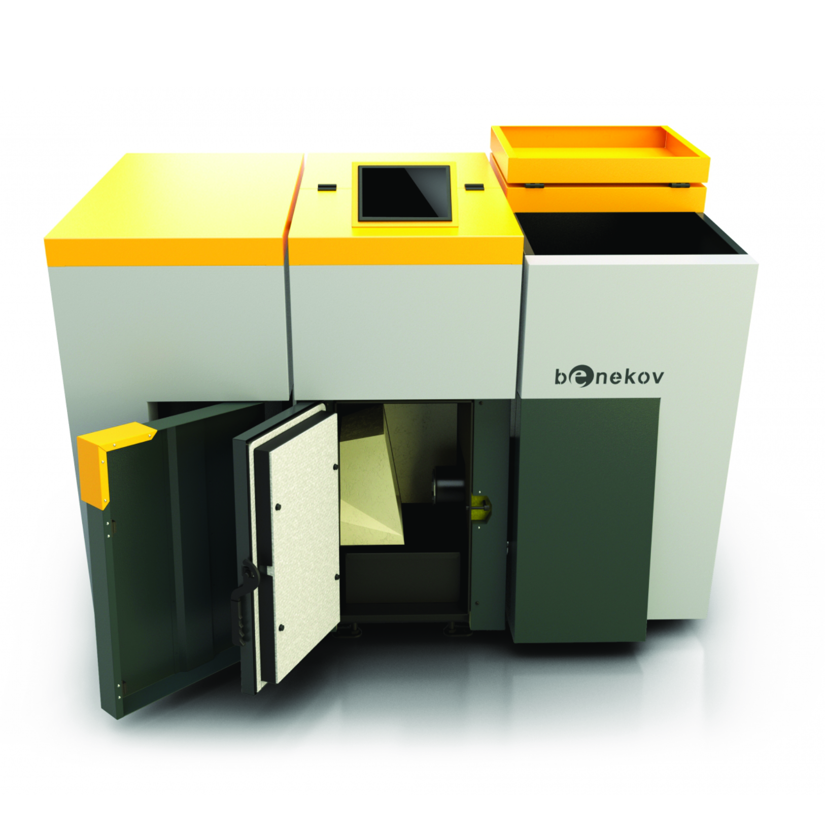 Hybridný tepelný zdroj H 25/10 je tvorený modulom peletového kotla BENEKOV K25 EXCLUSIVE, modulom tepelného čerpadla a vonkajšou jednotkou.